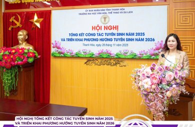 Chiều ngày 28/11/2025, Trường Đại học Văn hóa, Thể thao và Du lịch Thanh Hóa đã long trọng tổ chức Hội nghị Tổng kết công tác tuyển sinh năm 2025 và triển khai phương hướng tuyển sinh năm 2026 nhằm đánh giá kết quả đạt được và định hướng chiến lược cho giai đoạn tiếp theo.